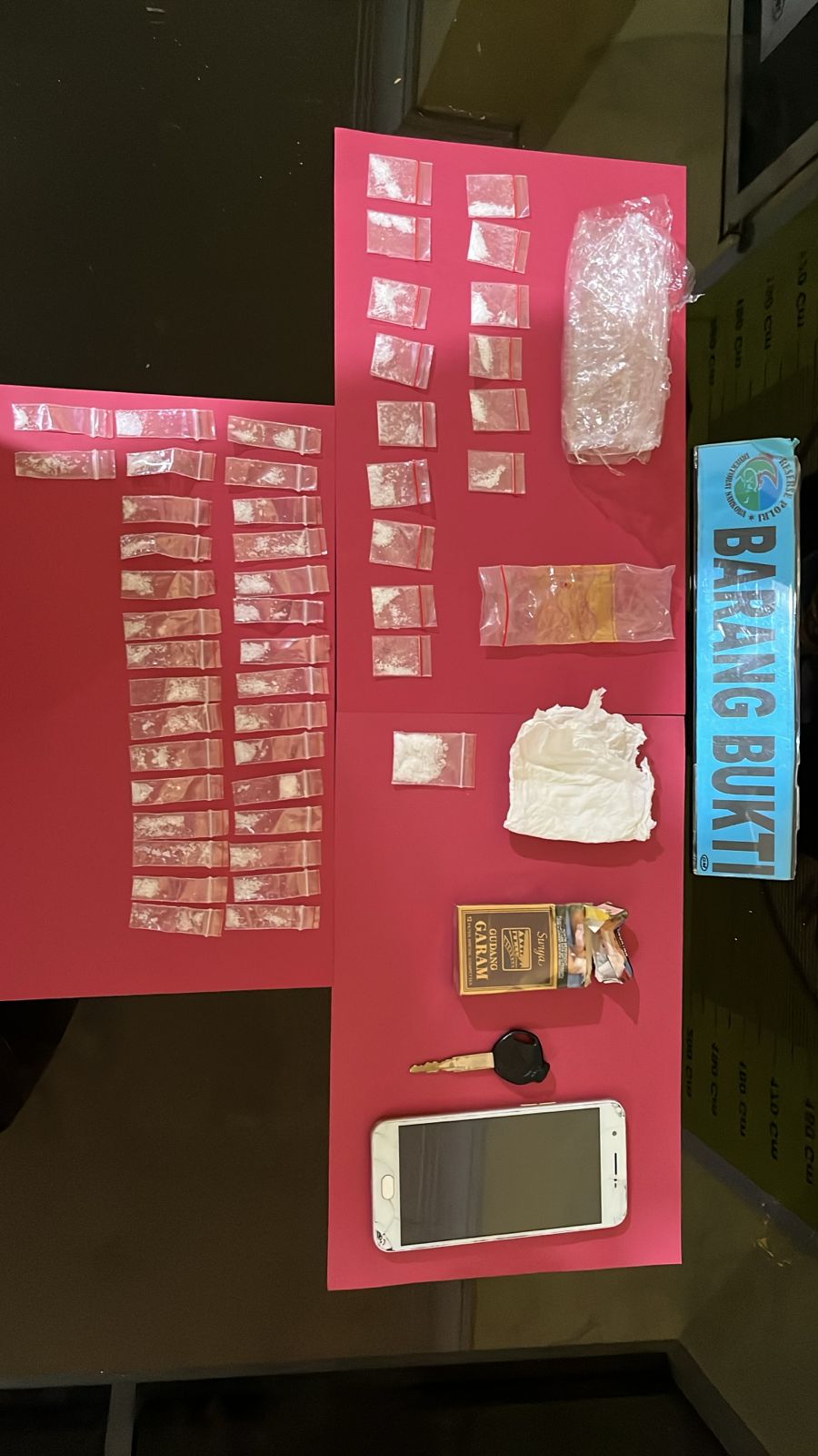 “kemudian dipanggil saksi-saksi untuk menyaksikan penggeledahan badan kepada tersangka LMP(23) ditemukan 1 (satu) paket sedang narkotika jenis shabu yang terbungkus plastic klip bening, 47 (empat puluh tujuh) paket kecil narkotika jenis shabu yang terbungkus plastic klip bening, 1 (satu) unit handphone android merk oppo warna gold, 1 (satu) unit Sepeda motor Honda Vario warna putih dengan Nopol BA 3101 GX.”jelasnya