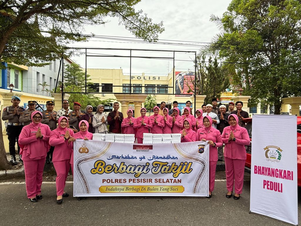 Sumbarinvestigasi.com|Pessel-Polres Pesisir Selatan bersama pengurus Bhayangkari Cabang Pesisir Selatan menunjukkan kepedulian sosial dengan membagikan paket takjil gratis kepada masyarakat di depan Mapolres Pesisir Selatan. Kegiatan yang berlangsung pada Jum’at, 27 Februari 2026 sore, menyasar para pengendara roda dua, roda empat, hingga warga sekitar yang sedang melintas menjelang waktu berbuka puasa.
